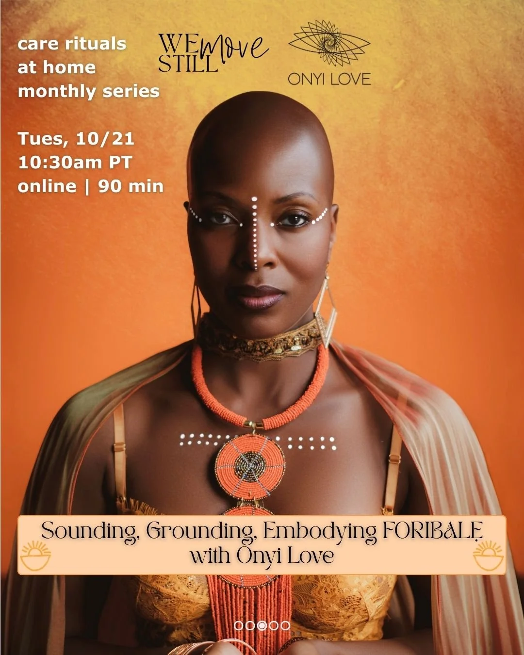 Step into a guided journey with Onyi Love in this month’s Care Rituals At-Home workshop series. Sounding, Grounding, Embodying FORIBALẸ is an interactive immersion weaving together creative expression, embodied movement, and ancestral technologies rooted in West African spiritual traditions.